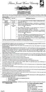 FJWU Jobs 2024 Rawalpindi Fatima Jinnah Women University Advertisement